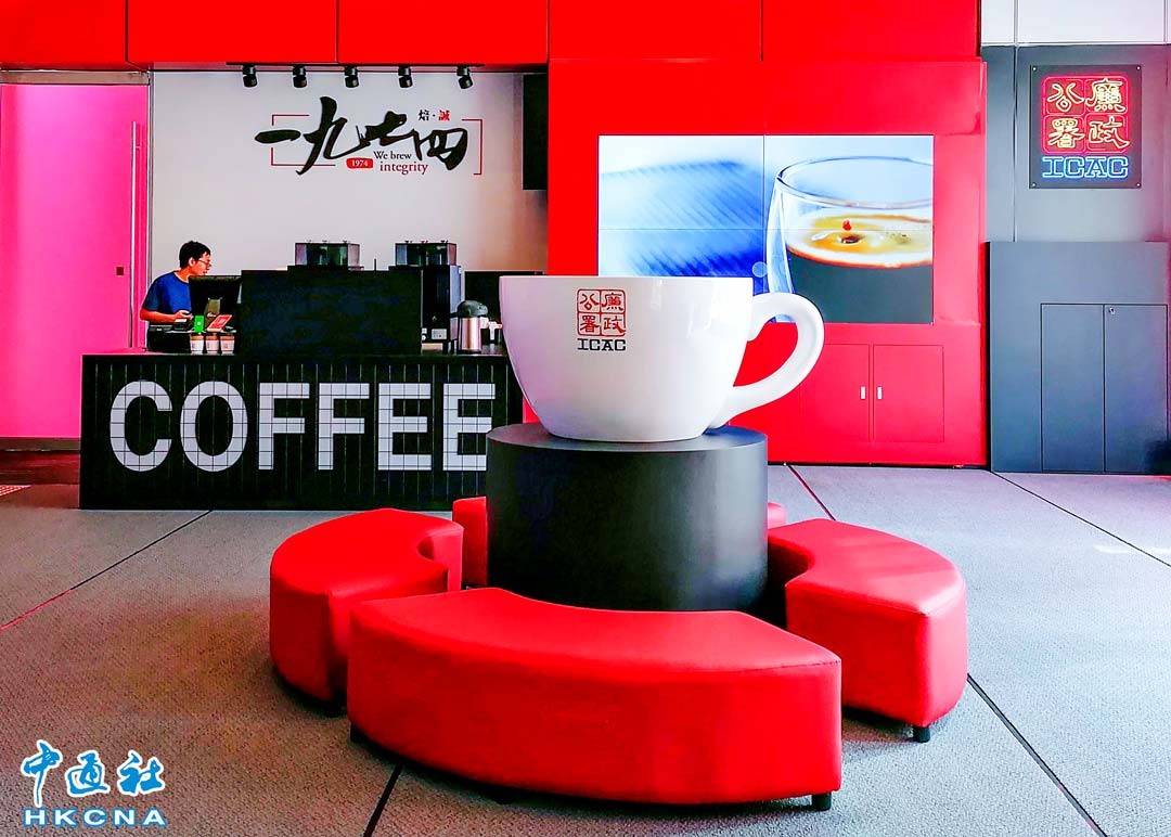 11月5日,位于香港北角的香港廉政公署总部咖啡厅。香港廉政公署今年踏入50周年。廉署日前宣布,將於北角總部一樓開設名為“一九七四”的咖啡廳,讓市民可在進入咖啡廳品嚐“廉署咖啡”之餘,近距離認識廉署工作及最新發展。 (香港中通社記者 洪少葵攝)