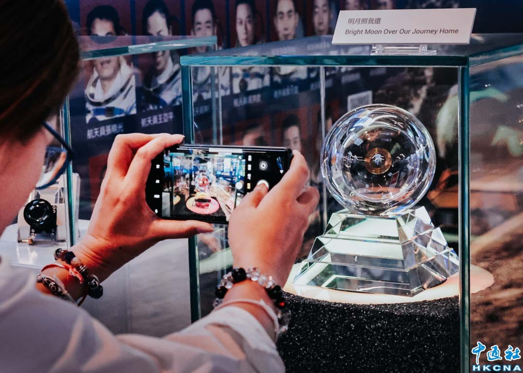 11月6日,香港特區政府保安局及轄下紀律部隊和輔助部隊一連六日在香港太空館大堂舉行展覽,展出早前精心挑選隨國家實踐十九號衛星升空的文化創意物品,以加強市民的民族自豪感,並增進大眾對各部隊的了解。“實踐十九號”衛星是中國首顆可重複使用的返回式技術試驗衛星,於9月27日發射升空,10月11日成功返航。(香港中通社記者 謝光磊攝)