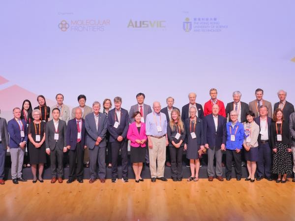 香港科大一連三天舉辦“分子前沿研討會”,邀得多位國際知名科學家,包括四名諾貝爾獎得主出席演講。一眾與會嘉賓拍攝大合照,包括:科大校長葉玉如教授(前排左八)、分子前沿基金會創會主席Bengt NORDEN 教授(前排左七)、三名諾貝爾獎得主蒂姆‧亨特爵士(前排左六)、卡爾‧巴里‧夏普利斯教授(前排右九)、格雷戈裡‧溫特爵士(前排右六)、麻省理工學院David H Koch學院教授羅伯特·蘭格院士(後排右六)、多名科大高層以及來自不同院校與界別的演講和參與嘉賓。香港科技大學供圖 該研討會由瑞典皇家科學院所成立的分子前沿基金會主辦,獲盈信泰資本(Ausvic Capital)贊助,過往一般較常於歐洲、北美以及包括日本、新加坡和南韓等亞洲國家舉行。該基金會被譽為全球最具影響力的科學組織之一,在促進國際科學交流和合作方面發揮關鍵作用。(完) 【編輯:豐悅】