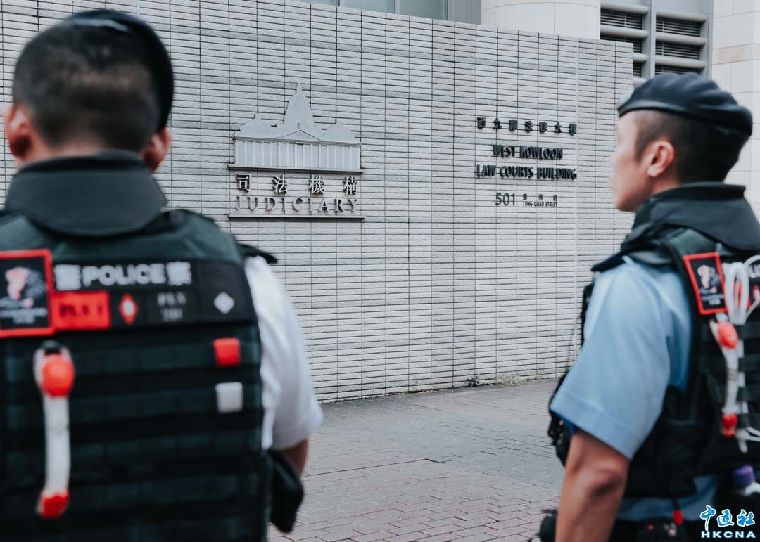 香港47人涉嫌參與“35+顛覆政權案”,被控串謀顛覆國家政權罪,45人罪成,法庭有意於明日(19日)判刑。11月18日,在西九龍裁判法院大樓外,香港警方已經加強部署及布防,增設鐵欄及防車衝擊設備;傳媒也紛紛擺放物品“霸位”,已有數十間傳媒機構“排隊”。(香港中通社記者 謝光磊攝)