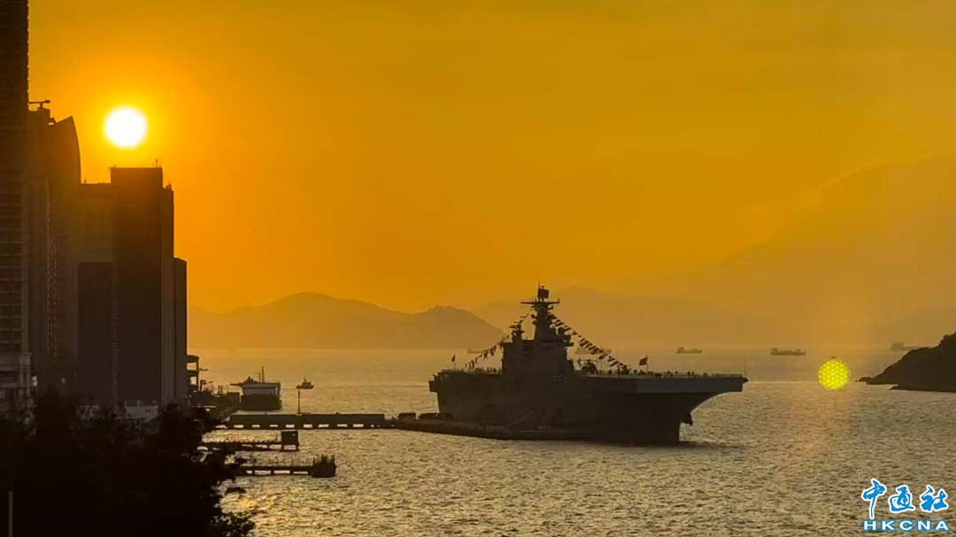 11月22日,中國海軍軍艦海南艦停泊在香港招商局碼頭,在夕陽下熠熠生輝。由海軍海南艦、長沙艦組成的編隊昨日(21日)抵達香港,展開為期5天的訪問。香港中通社圖片