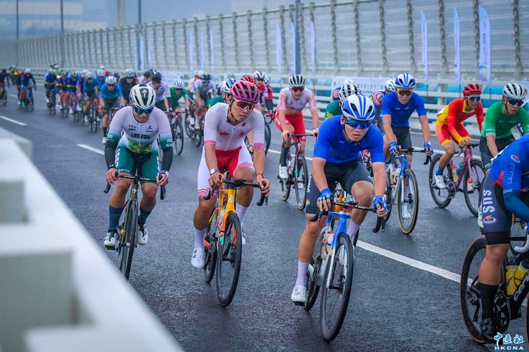 11月24日上午,2024粵港澳公路自行車賽暨第15屆全國運動會公路自行車測試賽開賽,起終點均為珠海博物館。賽事首次穿行港珠澳大橋、跨越粵港澳三地,其中澳門段13.5公里,參賽車隊出發後經大橋人工島到澳門,沿澳門大橋到北安碼頭調頭折返,然後經港珠澳大橋前往香港。後半段從港珠澳大橋再折返,經橫琴後預計下午2時許返回終點圖為參賽車隊在澳門大橋路段騎行。香港中通社圖片