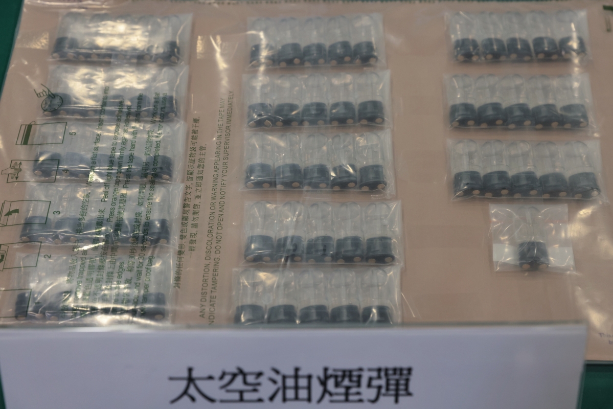 檢獲的太空油煙彈和懷疑依托咪酯粉末 【編輯:洪少葵】