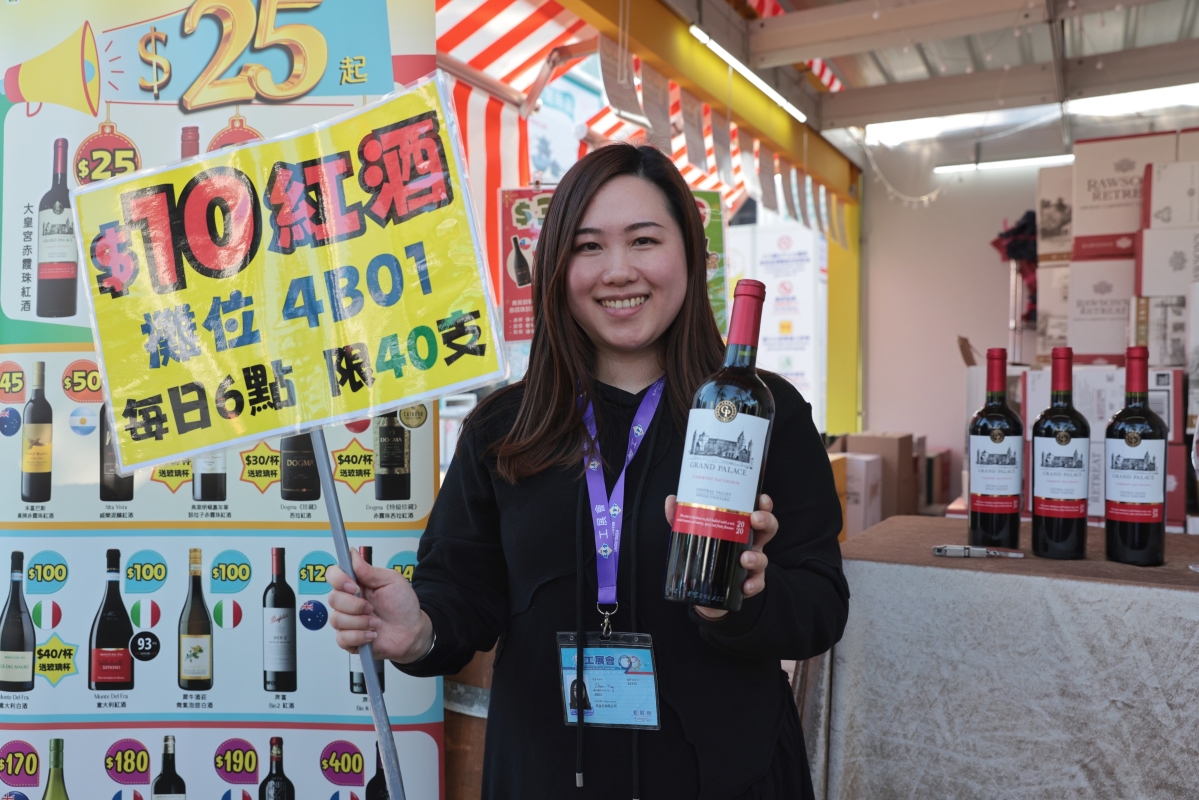 參展商以10元紅酒吸引入場人士
