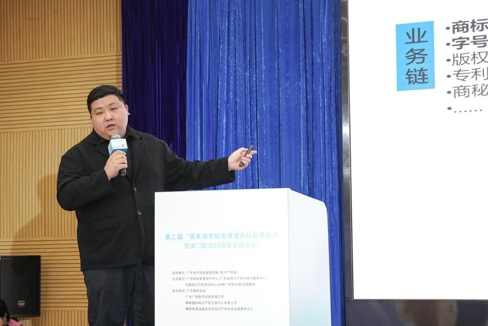 盧子浩 昊晨娛樂製作有限公司 總經理 分享主題-《澳門IP開拓大灣區市場》:了解澳門IP開拓大灣區市場之路,努力共同推動粵港澳大灣區各大IP在這一廣闊市場中實現共贏。 此次活動的成功舉辦,不僅展示了粵港澳三地青年在商標品牌保護與創新方面的專業素養和辯論技巧,也進一步推動了粵港澳大灣區商標品牌領域的交流與合作,展現了商標品牌建設新成果。 未來,我們將繼續努力為粵港澳大灣區知識產權事業的高質量發展工作建言獻策,共同推動大灣區知識產權事業的高質量發展。讓我們共同期待下一屆粵港澳青年商標品牌主題活動的到來!(完) 【編輯:張明臻】