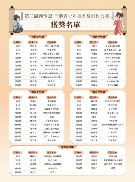 香港青少年熱衷傳統藝術 第三屆“西泠盃”全港青少年書畫篆創作大賽頒獎禮在博覽會閉幕式上舉行。本屆比賽共計收到來自香港百餘所學校的近300幅學生作品參賽,最終評選出三大類五個組別共計53件優秀作品。 有年僅十歲的香港小學生深受香港“熊貓熱”啟發,將六隻大熊貓、金紫荊銅雕、維港五彩煙花等香港特色元素融合到畫作當中,順利成為本次書畫篆創作大賽的繪畫小學組亞軍得主。她在得獎後興奮地向現場記者展示其得獎作品,又分享其畫作當中六隻大熊貓活潑地爬在“永遠盛開的紫荊花”銅雕上,是要呈現牠們不斷努力向上的姿態,寓意香港蒸蒸日上,繁榮盛世。香港特別行政區第五任行政長官林鄭月娥、參展藝術家朱炳仁等為為獲獎同學頒獎,獲獎的曾同學說,能夠獲獎非常開心,今天在展會現場看到了這麼多名家名作,真希望長大以後也能像他們一樣了不起。西泠盃”全港青少年書畫篆創作大賽從2022年開始舉辦,已成為本地較有影響力的青少年藝術創作大型賽事。“藝文香港”總顧問、紫荊文化集團董事長許正中先生期待與社會各界通力合作,讓“藝文香港”越辦越好、以“西泠盃”青少年書畫篆比賽為代表的香港藝術教育也越來越繁榮。 (完) 【編輯:譚暢】
