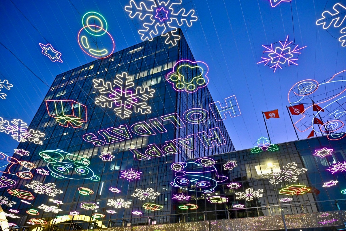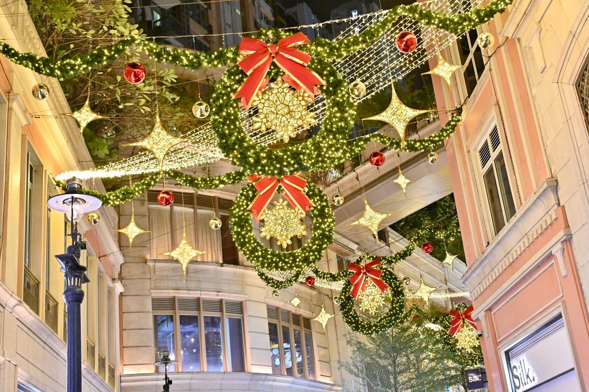 麼地里燈海有熊貓和雪花圖案。(政府新聞網圖片) 尖沙咀燈飾異彩紛呈,傳統“打卡位”尖東麼地里燈海,呈現熊貓和雪花等圖案,營造童話氛圍。 灣仔利東街的燈飾融合比利時傳統蕾絲工藝,林蔭步道掛上巨型聖誕花環,指定日子更有飄雪匯演,浪漫綺麗。 商場的大型戶外聖誕裝置如巨型木屋、雪橇、聖誕襪等,讓遊人猶如置身巨人國。 歷史建築也化身聖誕仙境,大館檢閱廣場設置12米高的聖誕樹,佳節期間呈獻馬戲表演,歡聲笑語不絕於耳。 香港新聞網祝大家聖誕快樂! (視頻來源:政府新聞網) 【編輯:黃璇】