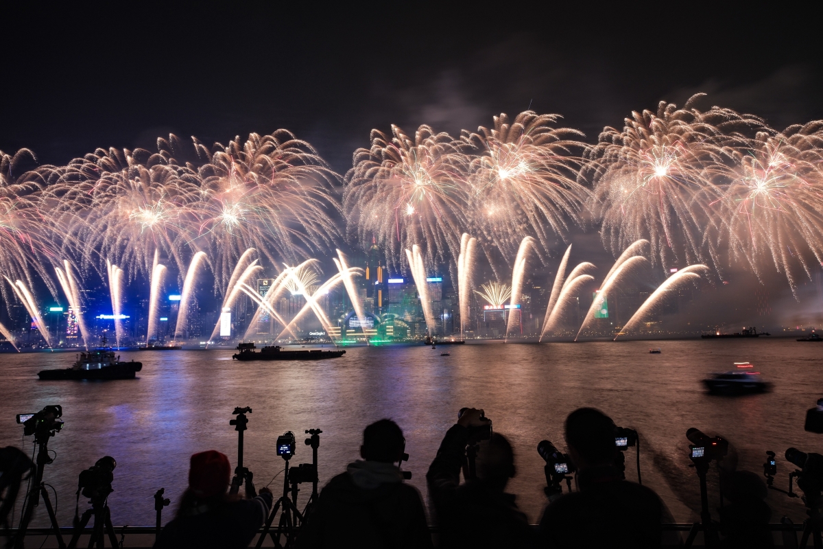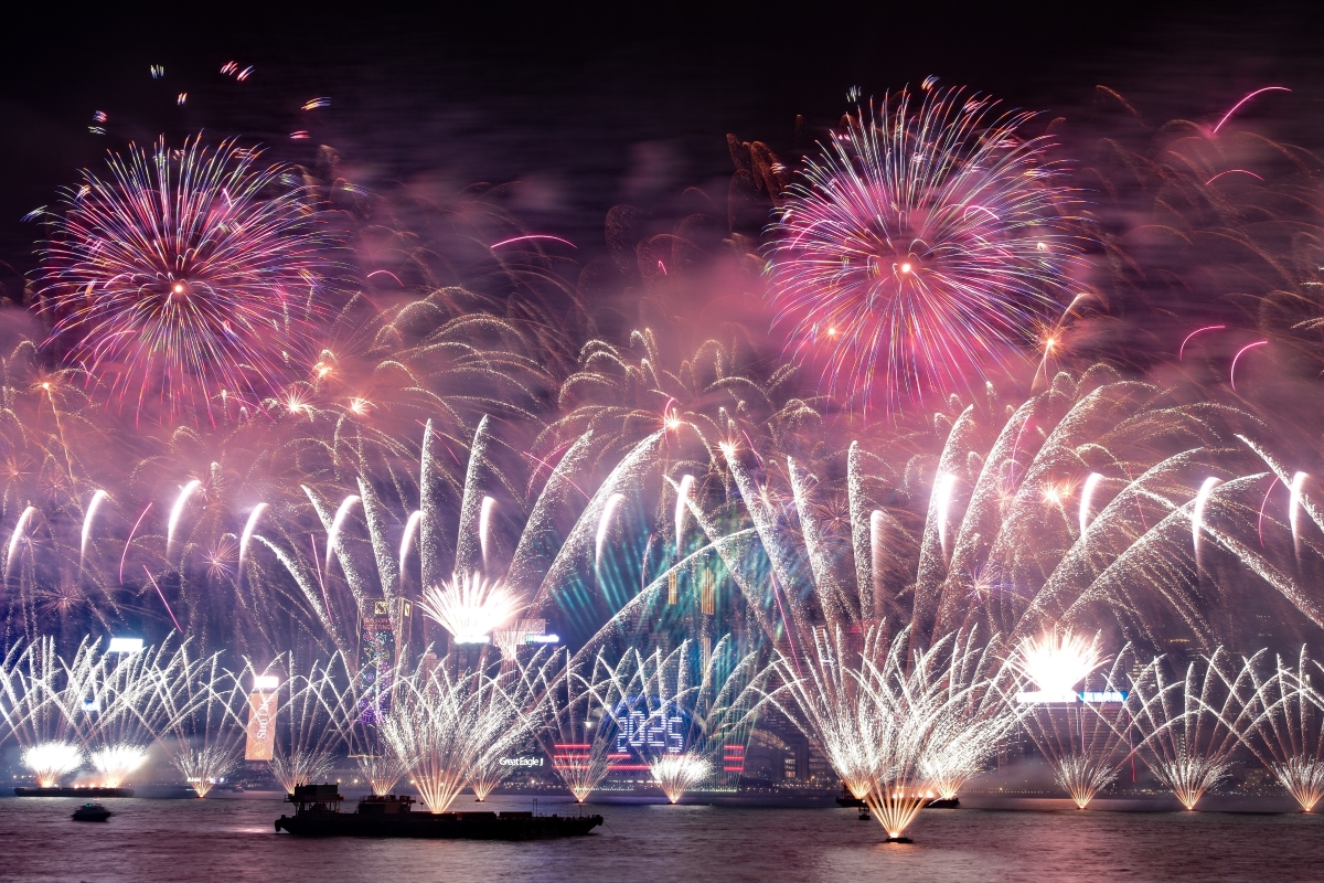 香港新聞網1月1日電(記者 許其皓) 2025年1月1日0時,香港維多利亞港上演煙花匯演,迎接2025年的到來。匯演歷時12分鐘,以“幸福樂章”為主題,以大自然元素為設計概念,通過煙花展示大自然的不同形態,傳遞對美好生活的祝願。當天晚上,大批公眾齊聚尖沙咀海濱觀賞煙花迎接2025年。尖沙咀和中環等地區,陸續分階段實施封路和改道措施,另外,羅湖口岸通關時間將延長至凌晨2時,深圳灣口岸則是通宵開放。