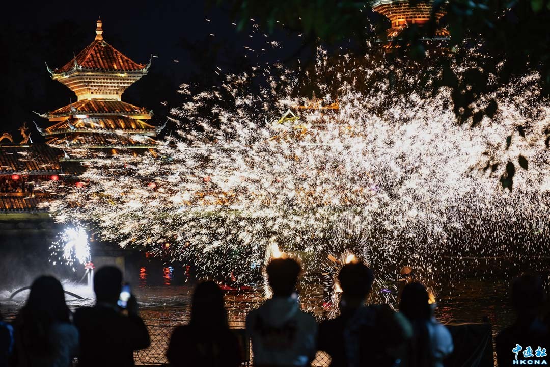 12月31日晚,深圳錦綉中華全新大型國風沉浸式新文娛主題區《錦綉盛市·夢華錄》的開市,為2025深圳文旅產業注入新動能。圖為鋼花表演迎新年。(聞子 攝)