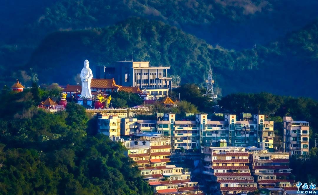 台灣基隆美術館“百尺竿頭 迎繽萬千”特展活動,呈現基隆走過百年光景,隨著時代脈動不斷蛻變的面貌。本次活動除將基隆的多元文化、歷史風華、經濟發展與觀光前景濃縮在系列活動中,还讓民眾在室內展覽中走出戶外,認識基隆這座城市過去、現在與未來的各項發展。圖為基隆中正公園壽山之巔“大佛禪寺”有尊高達22.5公尺的白色觀音大士像,為基隆市最具代表性的景觀。 香港中通社圖片