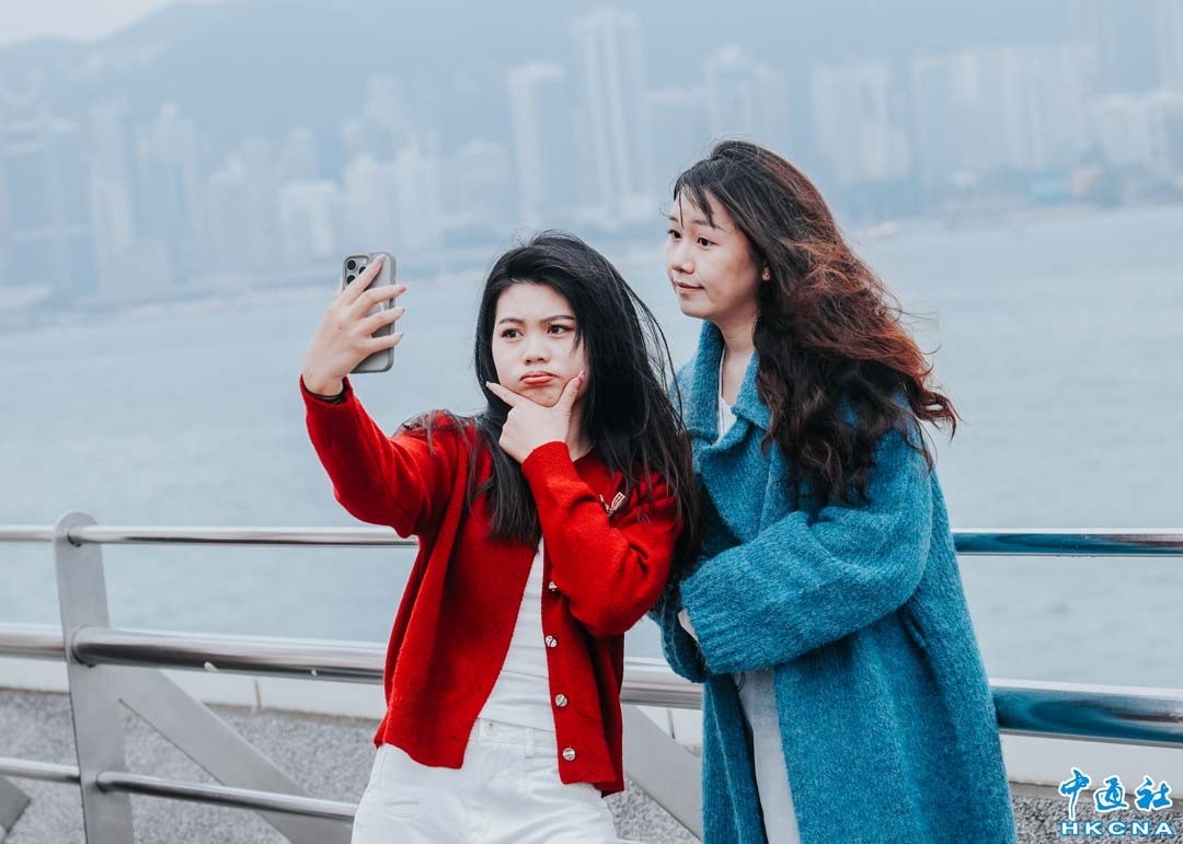 1月1日,香港尖沙咀,大批市民和遊客出街歡度元旦。(香港中通社記者 曹文毓攝)