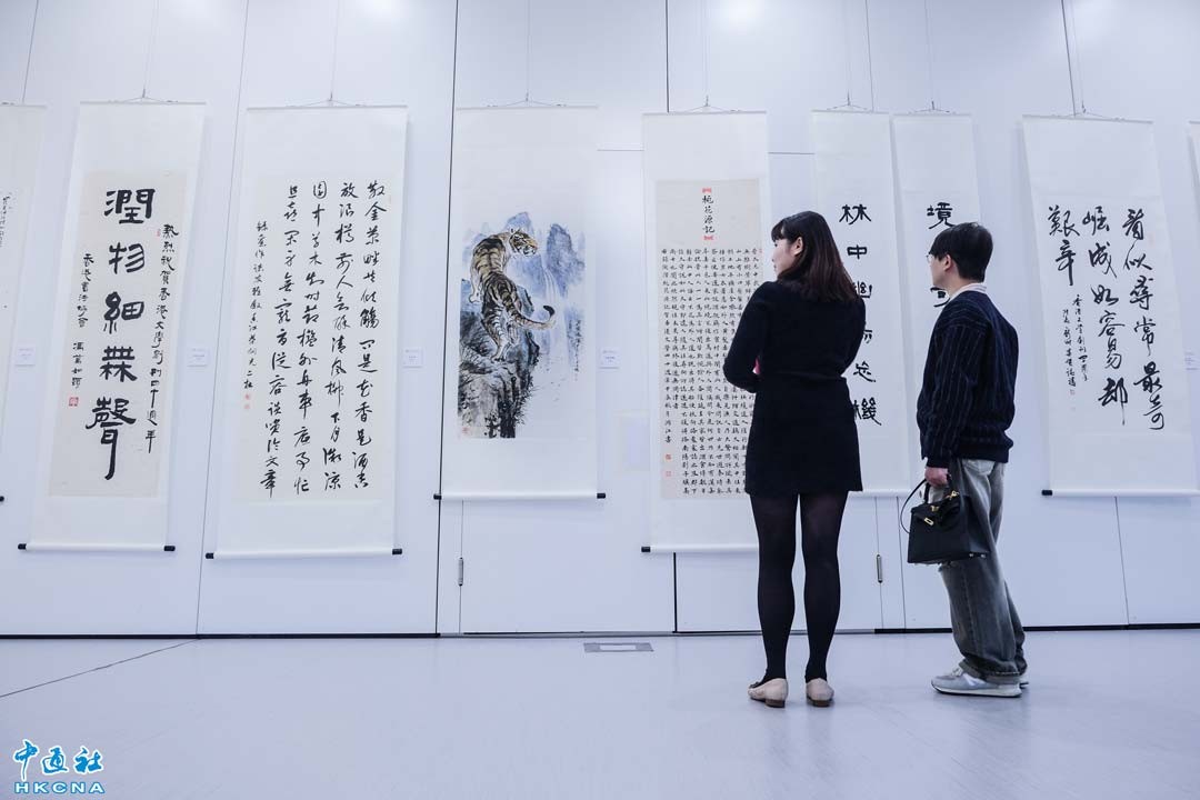1月5日,《香港文學》四十週年誌慶書畫展暨作家手迹展在香港中央圖書館開幕。(香港中通社記者 許其皓攝)