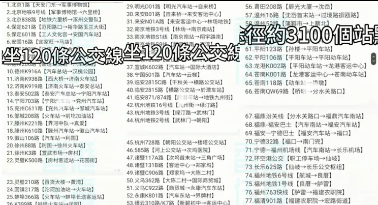 他從北京天安門出發,最終抵達香港港島區。期間,他跨越了66座城市,途徑逾3100個站點;花費共計約2800元人民幣,其中交通費用約794元人民幣。