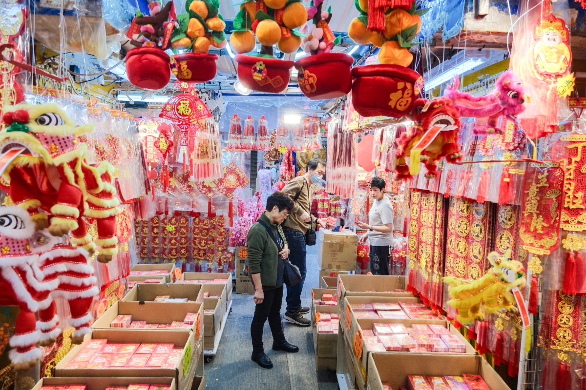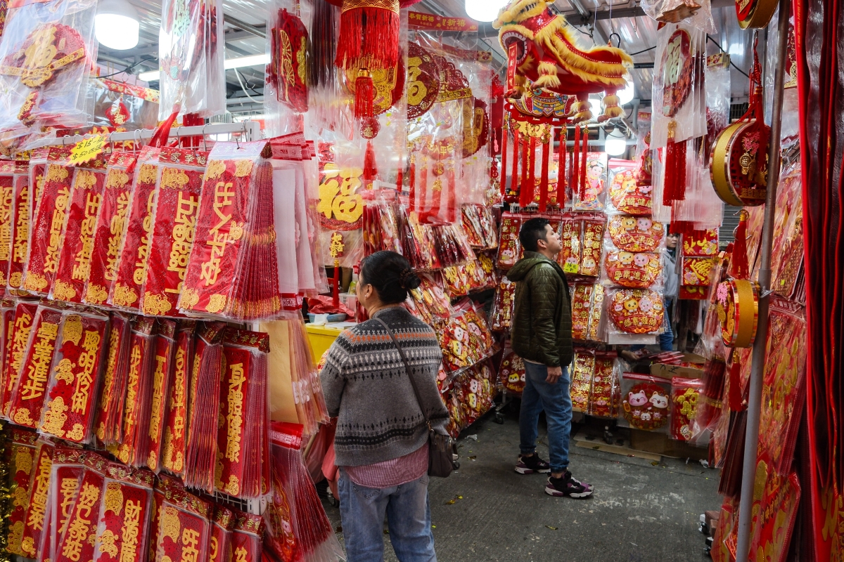 香港新聞網1月9日電(記者 許其皓)  1月9日,農曆新年將至,香港深水埗福榮街兩邊的店鋪擺滿新年裝飾,燈籠、揮春、元寶、福字等商品琳瑯滿目,吸引不少市民前來選購心儀的商品迎接農曆新年。
