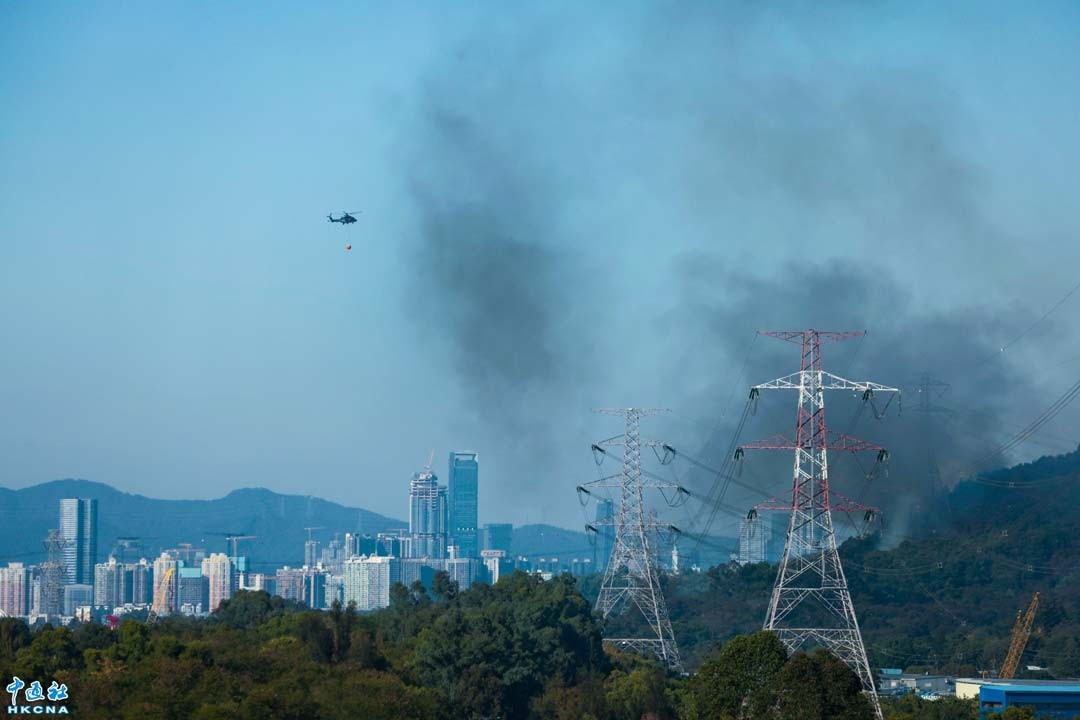 1月12日下午三時許,香港元朗雞公嶺山火現場仍然濃煙滾滾。元朗雞公嶺昨日(11日)下午5時31分發生山火,火勢於今日(12日)早上10時40分受到控制。消防員正動用山火拍撲滅山火,政府飛行服務隊亦派直升機到現場投擲水彈協助灌救。(香港中通社記者 謝光磊攝)
