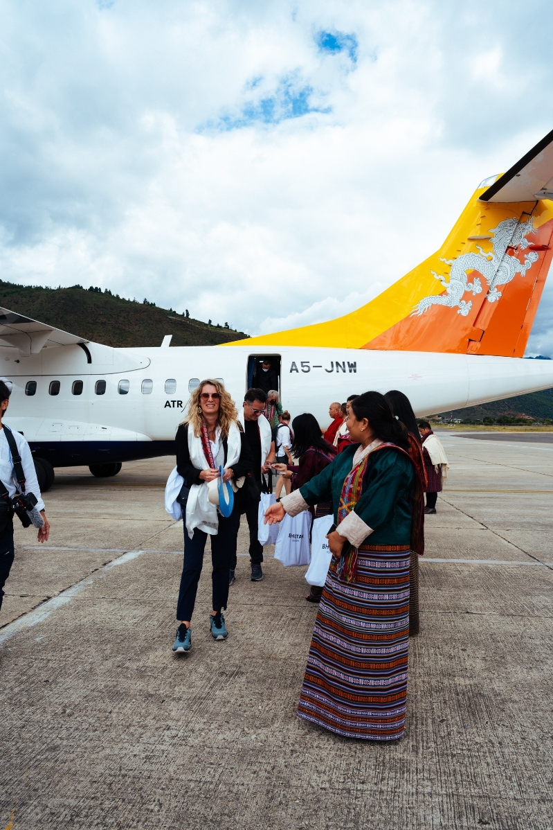 旅客乘坐不丹航空班機抵達不丹。