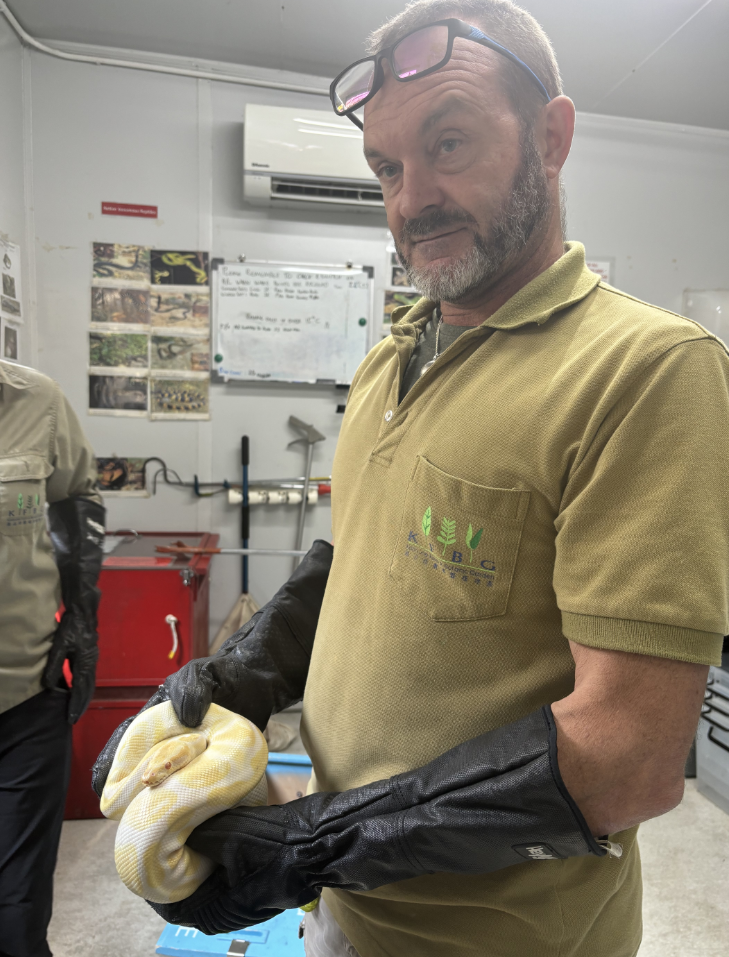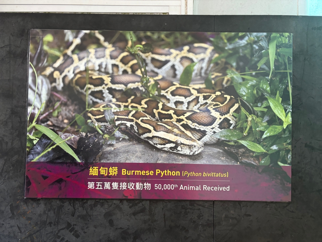 嘉道理農場暨植物園自1994年開園以來,接收的第五萬隻動物是一條斑紋美麗、年幼的緬甸蟒。(香港中通社記者 黃璇攝) 嘉道理農場的蛇類拯救計劃,是香港唯一專門處理蛇類救援的項目。過去25年來,園方與漁護署、警方及被稱為“蛇王”的專業捕蛇人士合作,為誤闖民居的蛇類提供安全的處置方式。這些蛇大多是本地原生物種,如緬甸蟒、白唇竹葉青、紅脖游蛇等,在完成健康評估後會被野放到遠離人類活動的大自然。然而,部分蛇類是外來物種,可能源自“異寵”交易。這些外來蛇類,如球蟒,雖因鮮豔的色彩與溫順的性情備受寵物主人歡迎,但被棄養後卻可能威脅本地生態系統。 2022年,園方啟動了本地“原生蛇類快速野放計劃”,讓經警方認證的“蛇王”可以在完成健康檢查後,直接將蛇送回自然棲息地,而無需再經過嘉道理方面的中轉處理。這一舉措大幅提升了救援效率,目前已有11名“蛇王”獲得“本地原生蛇類野放許可證”。 今日活動的焦點之一,是一條特別的球蟒“教育大使”。牠曾是某位寵物主人的“心頭好”,如今卻被拋棄,後經嘉道理農場暨植物園的野生動物拯救中心救治,最終成為教育工作的一部分。這條球蟒現在經常出現在園方的保育活動中,用自己的經歷提醒人們:棄養不僅對動物殘忍,也可能對生態造成破壞。 蛇年切勿胡亂養蛇