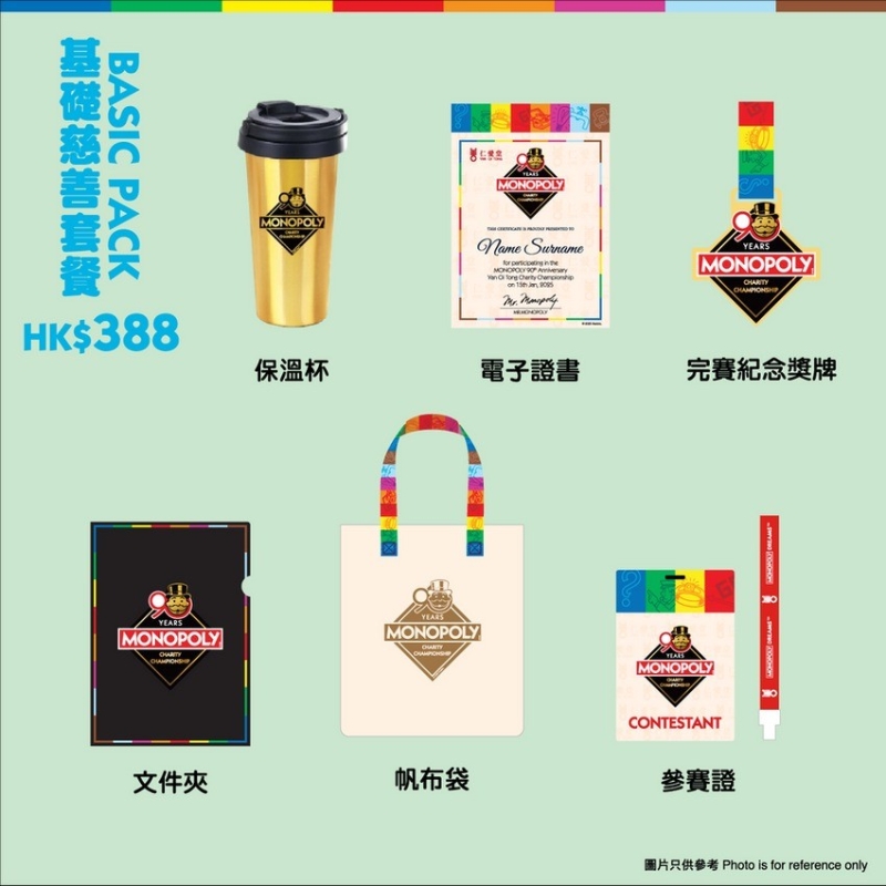 每位參加者可獲豐富選手包,包括紀念版環保袋、保溫杯、文件夾、獎牌、完賽證書,冠軍更可獲得來回日本雙人機票一套,及獎金港幣20580元,相等於一副經典版大富翁的錢幣總值!最後10強參賽者均可獲得獎金港幣2058元及豐富禮品!