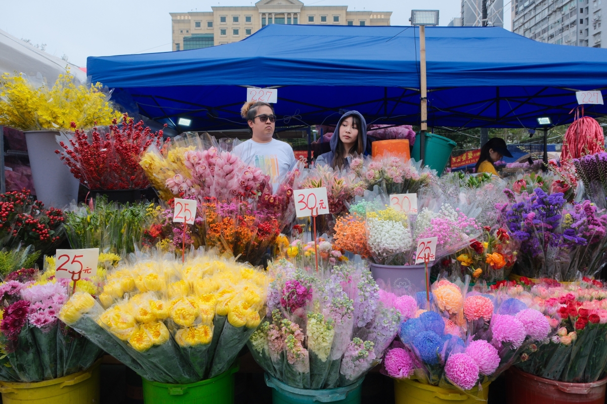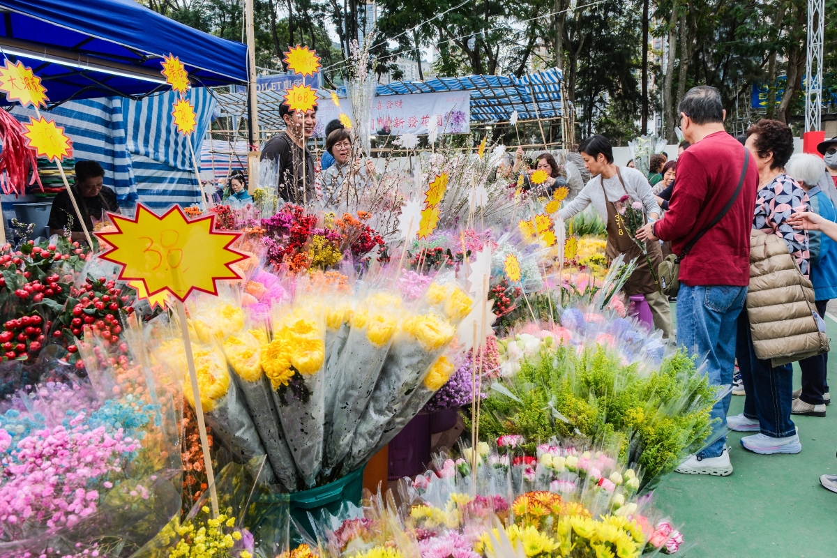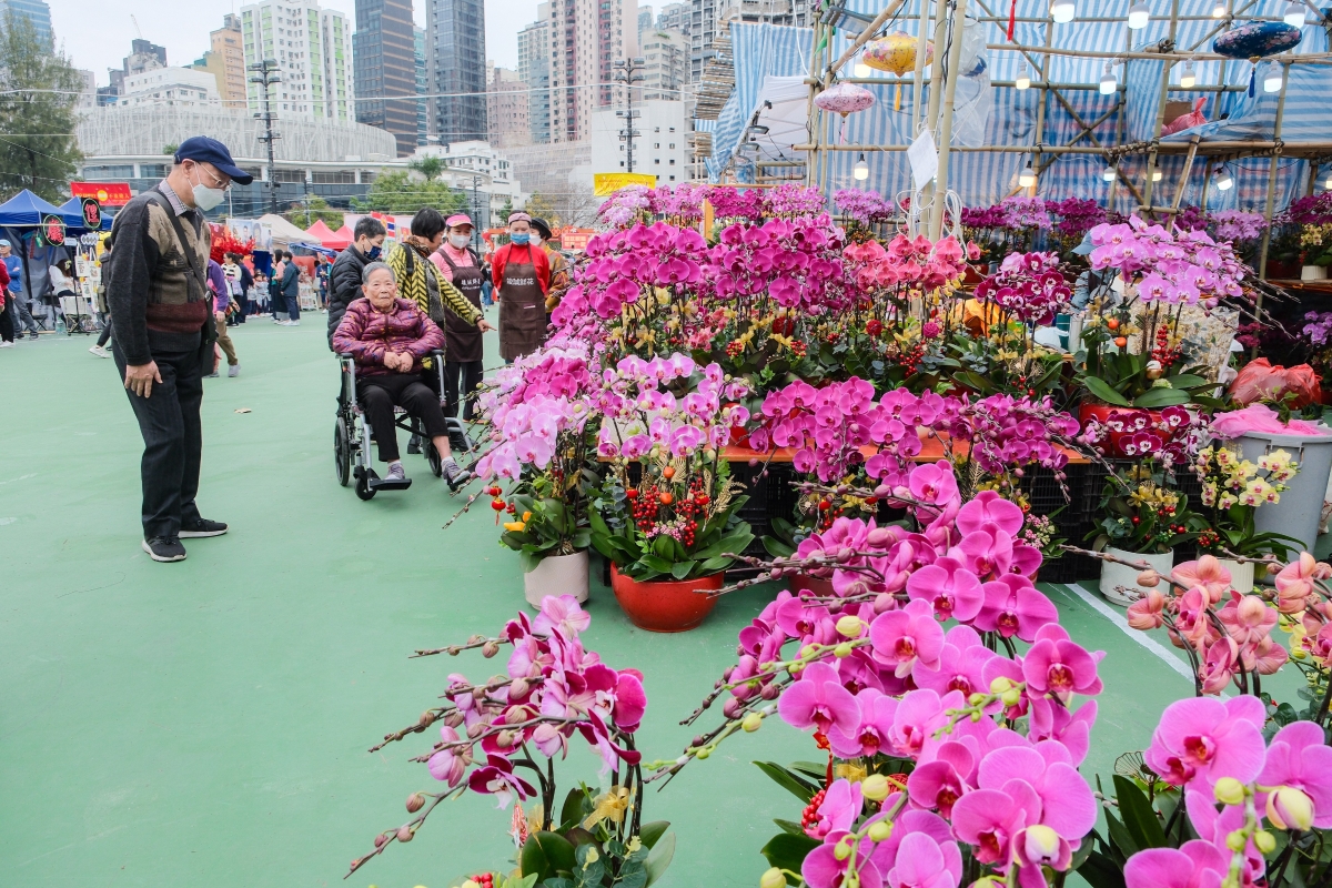 香港新聞網1月23日電(記者 許其皓)  1月23日,香港維多利亞公園年宵花市開鑼,吸引大批市民入場選購年花。農歷年宵市場由1月23日至1月29日,一連七天於香港15個地點舉行,共設1,500個年花濕貨攤位,售賣濕貨、幹貨供市民購買賀年花卉、賀年食品、裝飾和揮春等年貨,其中9個年宵市場更設有快餐攤位。