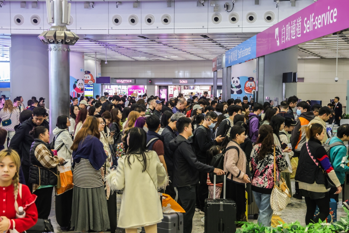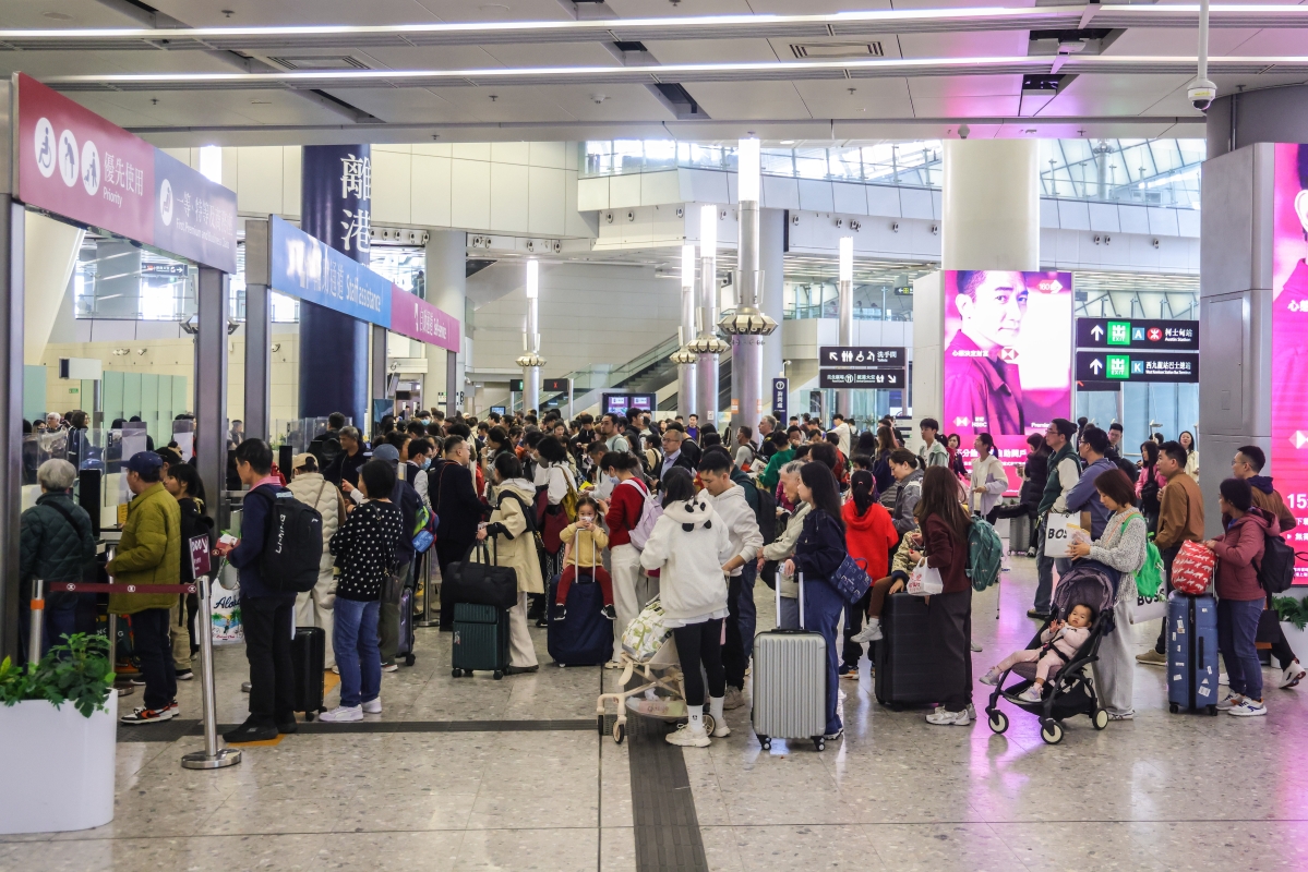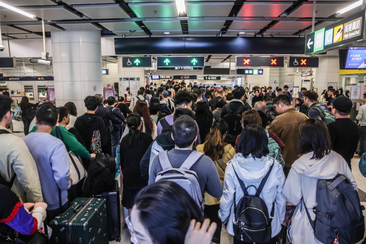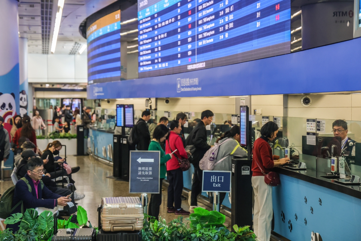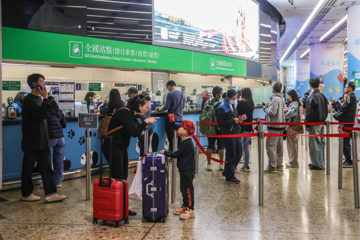 香港新聞網1月24日電(記者 曹文毓) 1月24日,香港西九龍高鐵站。香港入境處估算今年春節黃金周,即1月28日至2月4日期間,會有約867萬人次,包括香港居民及訪客,經各海、陸、空口岸進出香港,當中預計約有734萬人次會經陸路進出。陸路出境的高峰期為1月31日,即年初三,預計會有超過56萬人次出境;入境高峰期為2月2日,即年初五,預計有約64萬人次入境。