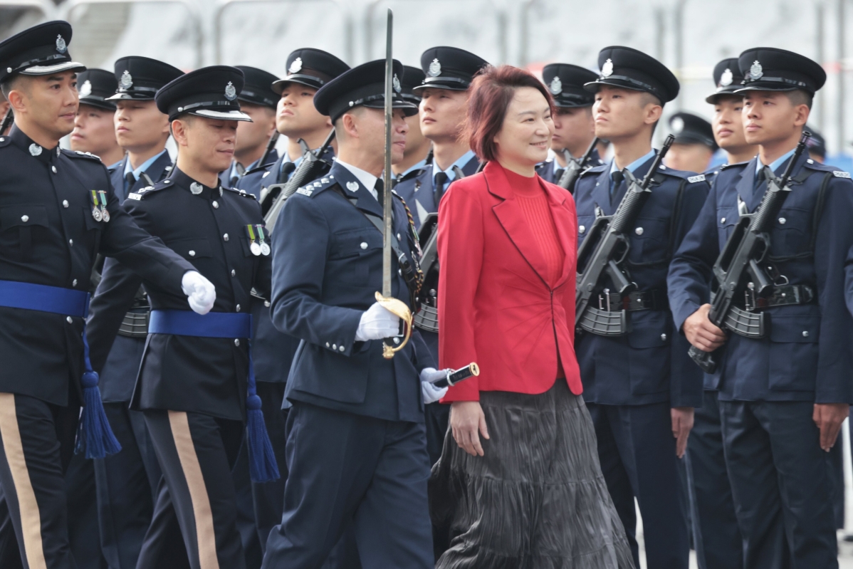 第十四屆全國人民代表大會常務委員會委員李慧琼在典禮中檢閱畢業的見習督察和學警