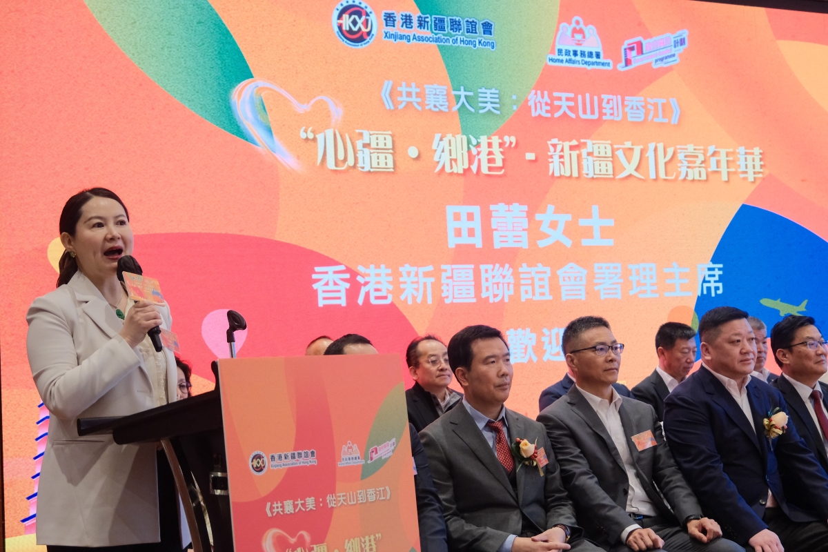 當日活動在全場奏唱國歌後正式開啟。香港新疆聯誼會署理主席田蕾致歡迎辭表示,新疆,那片廣袤而神奇的土地,承載著千年的歷史文化,是多元民族文化交融共生的璀璨明珠。香港是中西方文化交融的國際大都市,這次文化嘉年華,不僅是新疆文化在香港的精彩呈現,更是兩地文化的交流互鑒。相信通過這樣的活動,能夠進一步加深香港市民對新疆的瞭解,增進彼此之間的友誼與合作。