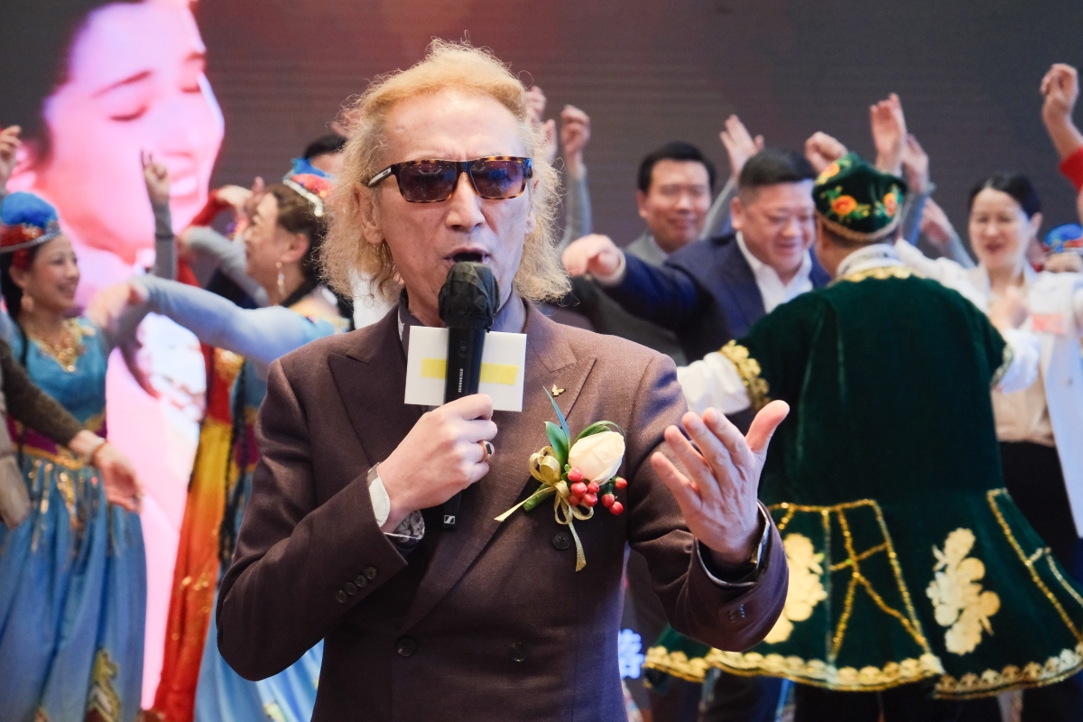 活動現場并邀請到新疆著名音樂人狼戈老師。他以極具感染力的歌聲,為大家演繹家喻戶曉的《蘋果香》,以及《彩虹之戀》、《今天是個好日子》等曲目,優美的旋律帶領與會嘉賓一同走進新疆果園,感受新疆的廣袤大地、悠久文化與深厚情感。