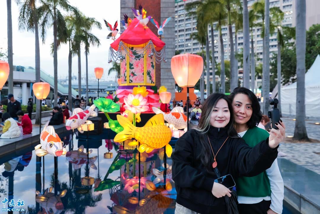 1月23日,由香港特區政府康樂及文化事務署主辦的春節綵燈展《華燈‧傳承》於香港文化中心露天廣場舉行,展出繽紛奪目的花燈,與市民一起迎接蛇年的來臨。圖為當日,許多市民和遊客前來賞燈。(香港中通社記者 謝光磊攝)