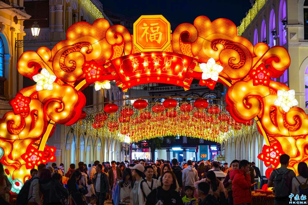 1月25日,設置在澳門新馬路的賀歲燈飾。澳門市政署在各區佈置賀歲燈飾已點亮,澳門各區年味濃。香港中通社圖片
