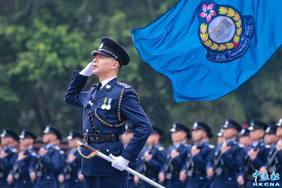 1月25日,香港警察學院舉行結業會操,第十四屆全國人民代表大會常務委員會委員李慧琼在典禮中檢閱畢業的見習督察和學警。(香港中通社記者 謝光磊攝)