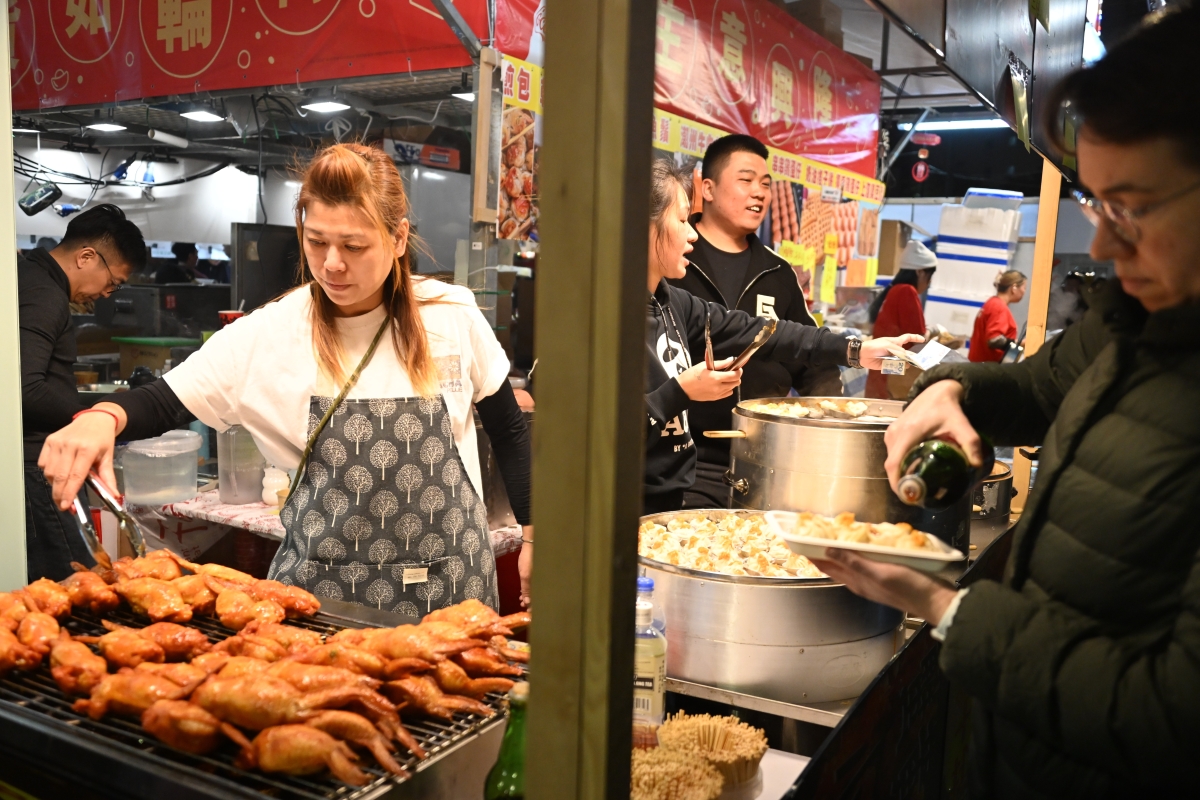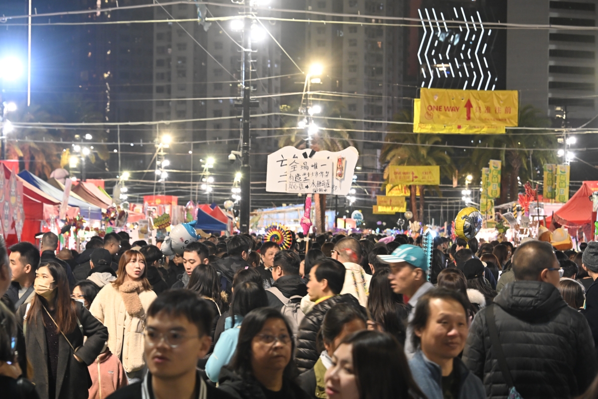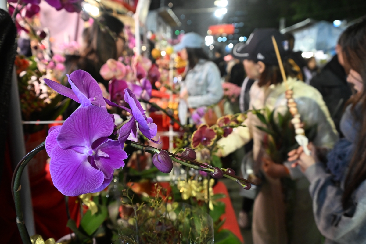 香港新聞網1月28日電(記者洪少葵)1月28日晚上,香港市民和遊客到維園花市逛花市購年花。當天年宵花市最後一日開放,大批市民在場內享受美食,歡度除夕夜樂也融融。香港農曆年宵市場1月23日開張持續至1月29日(年初一),全港共設有15個年宵花市地點,涵蓋濕貨、乾貨及快餐區,為市民提供了豐富多樣的選擇。