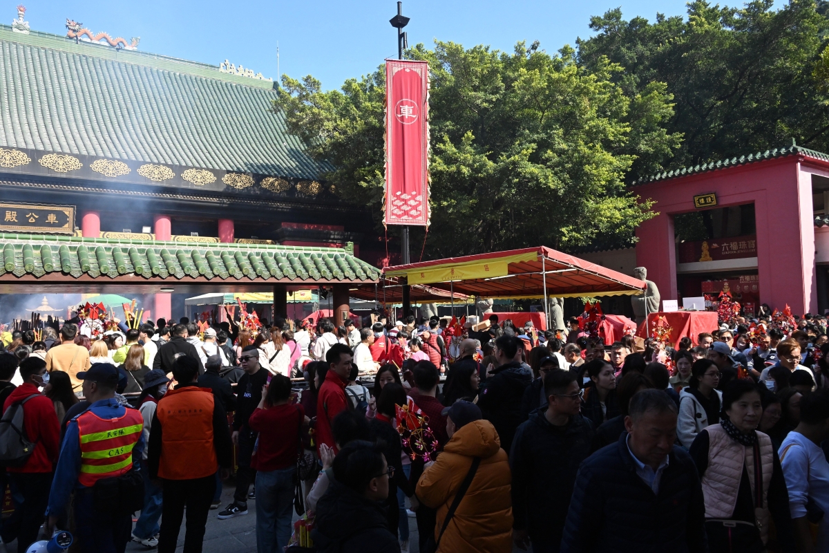 大年初二車公誕,大批市民到沙田車公廟求籤祈福