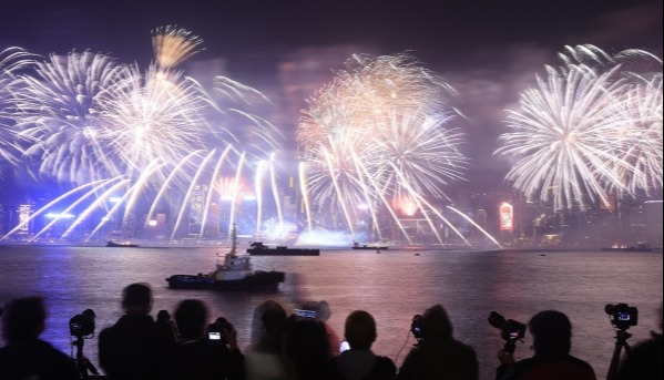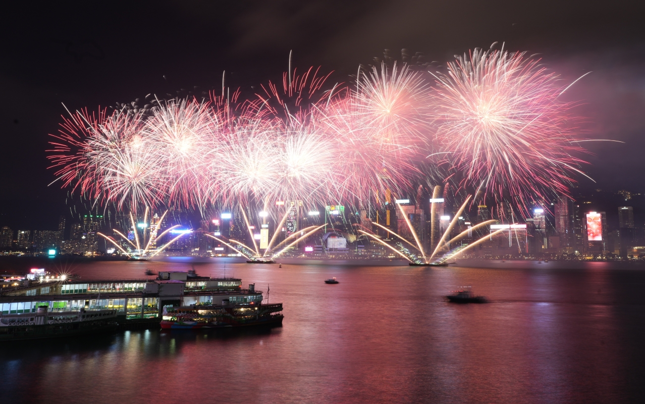 香港新聞網1月30日電 金蛇迎春慶豐年,1月30日大年初二,香港2025年農曆新年煙花匯演晚上8時在維港上空舉行,與市民遊客共賀新春。煙花匯演是香港新春招牌盛事,相比上月舉辦的跨年煙花,此次煙花匯演從五幕增至九幕,歷時更長,全程約23分鐘,由三艘躉船燃放23888枚禮花彈;適逢內地及香港春節假期,也吸引更多市民遊客前來,香港警方估計將有40萬人聚集維港兩岸觀賞。