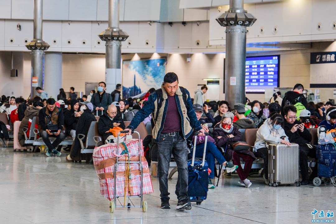 1月28日除夕,香港高鐵西九龍站迎來春運客流高峰。(香港中通社記者 許其皓攝)