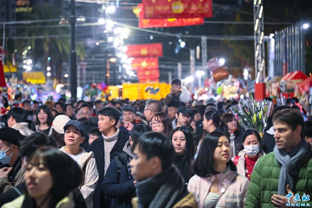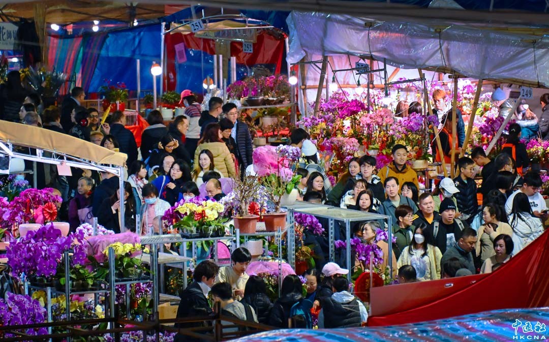1月28日晚上,香港市民和遊客到維園花市逛花市購年花。當天年宵花市最後一日開放,大批市民在場內享用美食,歡度除夕夜樂也融融。香港農曆年宵市場1月23日開張持續至1月29日(年初一),全港共設有15個年宵花市地點,涵蓋濕貨、乾貨及快餐區,為市民提供了豐富多樣的選擇。(香港中通社記者 洪少葵攝)