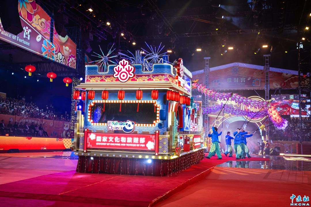 1月29日大年初一,“國泰新春國際匯演之夜花車巡遊”晚上8時在香港尖沙咀上演,作為乙巳蛇年香港賀歲的“頭炮”盛事。今年匯演主題是“如意新春 喜樂連連”,演出團體增至55個,陣容更勝去年。(香港中通社記者 謝光磊攝)