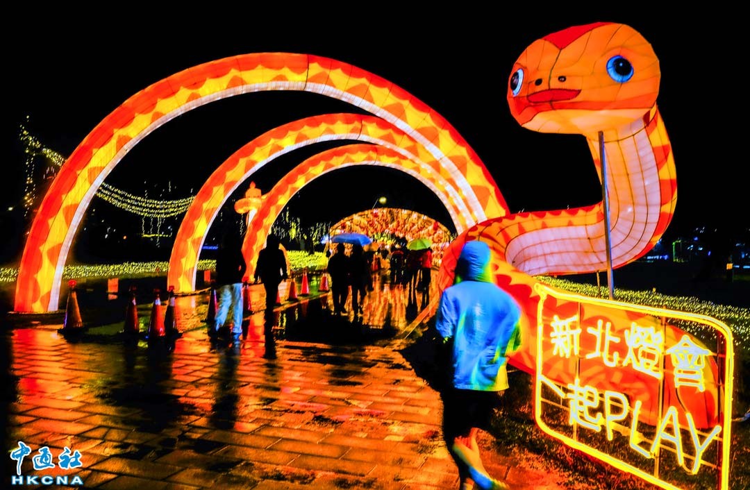 台灣2025新北燈會已在新北大都會公園正式登場,燈會以“靈蛇獻瑞一起PLAY”為主題,高12公尺的主燈“靈蛇獻瑞”,以台灣原住民文化為主題,呈現動物傳說與自然意象之美,將原住民傳統文化與現代科技結合創新,讓民眾欣賞從傳統到科技,從工藝到藝術的文化魅力。 香港中通社圖片