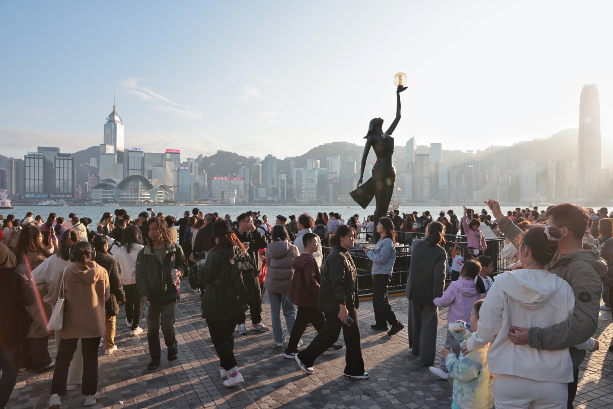 1月29日是年初一,香港尖沙咀人頭湧湧,大批市民和遊客外出遊玩。(香港中通社記者 謝光磊 攝)