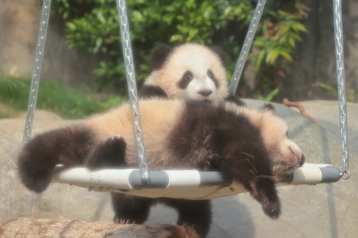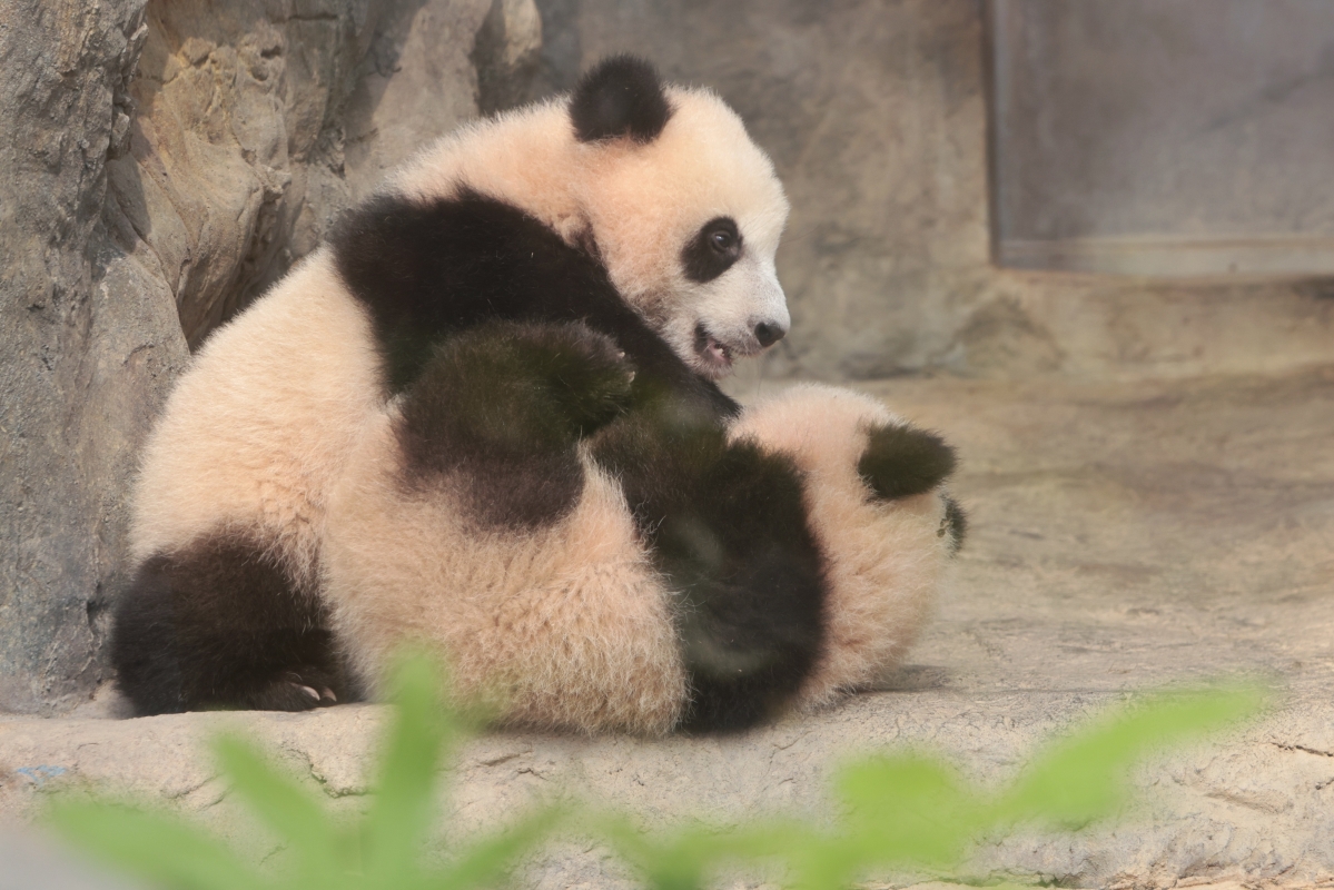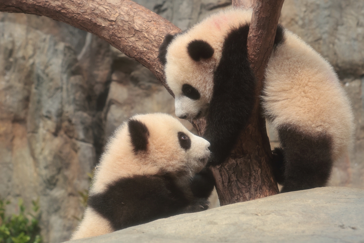 大熊貓龍鳳胎寶寶“家姐”與“細佬”正式亮相