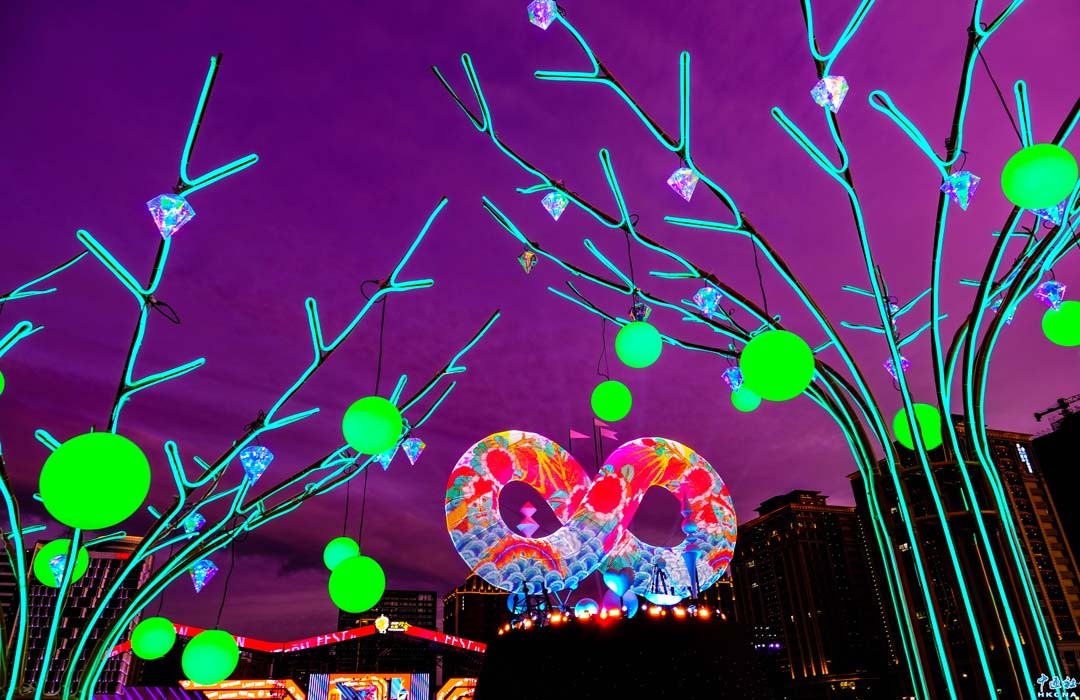 2025台灣燈會於2月12日元宵節正式開燈,以雙展區展出1座主燈、2大副燈及11個主題燈區,展出一百四十多座主題燈、四百八十多件作品。在夜幕低垂十分亮眼,展現傳統花燈工藝,透過多元創作主題,傳遞元宵佳節文化特色,並以光影熱鬧意象,訴說著桃園多元文化的城市魅力。圖為主燈“無限樂園”高18公尺,採用現代抽象無限符號造型,結合球體與幾何形狀,營造未來樂園意象。 香港中通社圖片