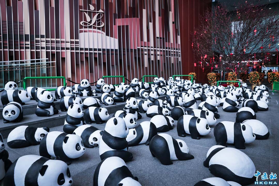 2月13日,150隻大熊貓雕塑在香港立法會大堂展出。全港最大型的熊貓展覽“PANDA GO!香港遊”,部分展品移師到立法會,立法會主席梁君彥歡迎市民和遊客前來打卡。(香港中通社記者 謝光磊攝)