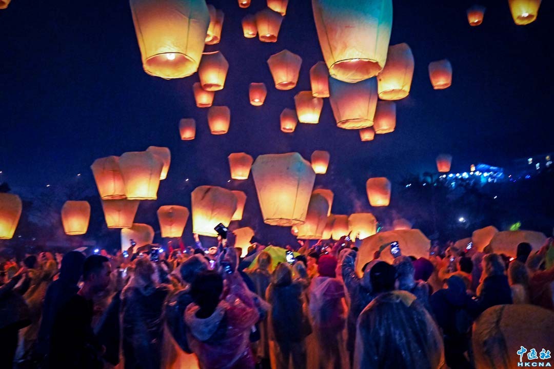 台灣新北市平溪天燈節2日12日晚上於十分廣場舉行,以蛇年元宵與西洋情人節為主題,天燈蛇影光雕秀施放粉紅蛇與金蛇的雙主燈,在小雨中冉冉上升,展現山城的幸福感,一起為新的一年寫下心願,點亮新希望。 香港中通社圖片