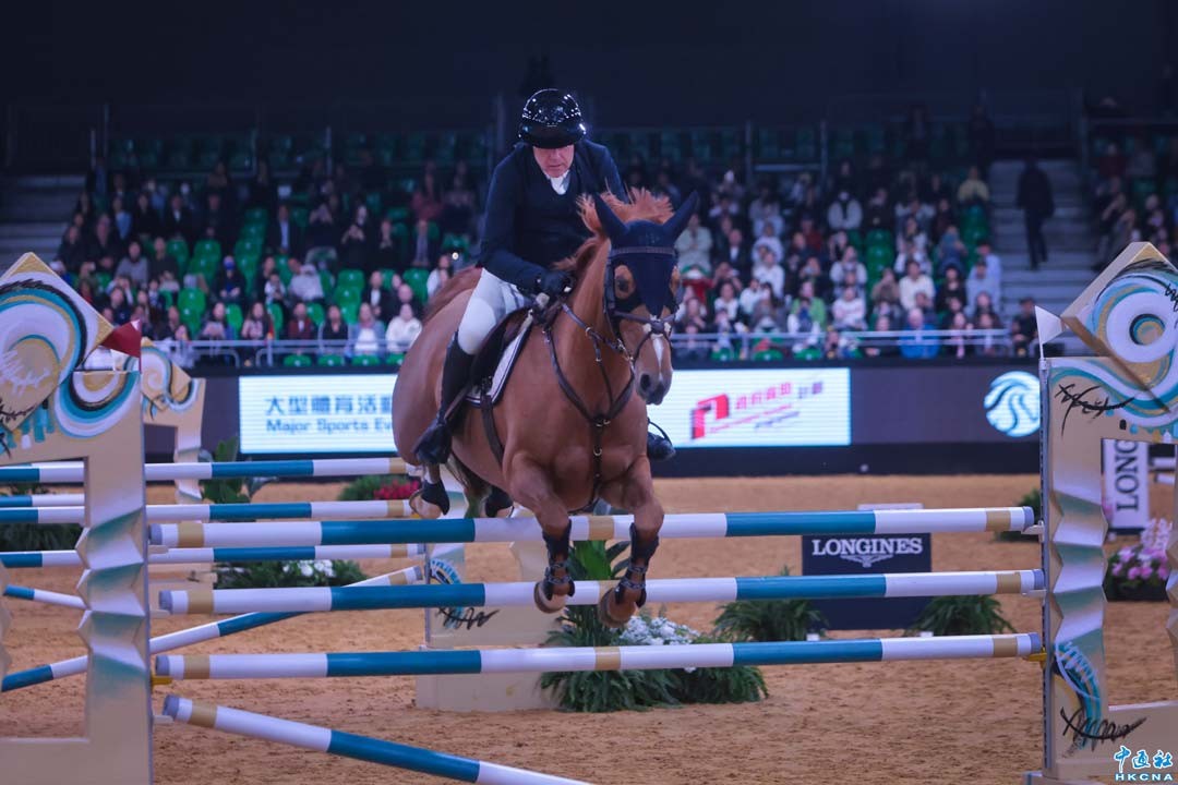 2月14日,首屆浪琴香港國際馬術盛典今天起一連3日在亞洲國際博覽館舉行,帶來世界級的卓越馬術比賽及表演。圖為國際五星級障礙賽選手在不同障礙賽中角逐。(香港中通社記者 謝光磊攝) 香港中通社圖片