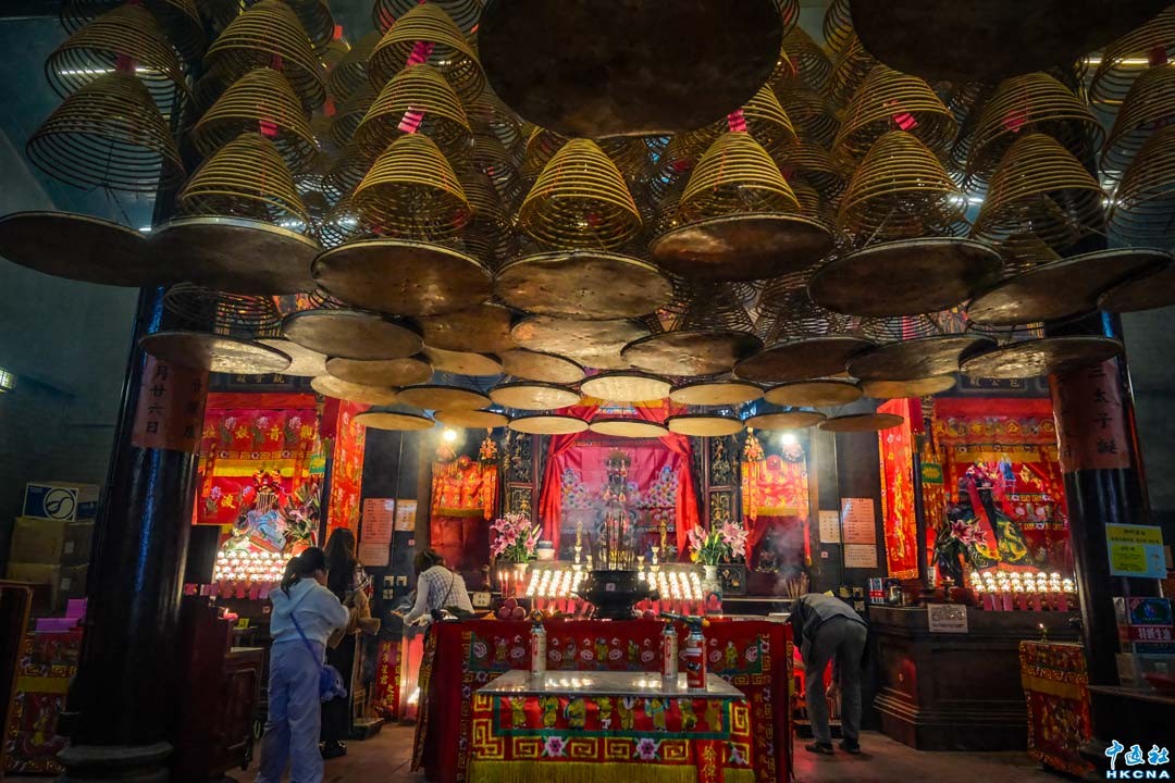 香港深水埗三太子廟又稱三太子宮,是香港唯一供奉中國神話封神榜主角的廟宇,內裡供奉哪吒三太子。廟宇位於九龍深水埗汝州街,建於清朝光緒年間,現為香港二級歷史建築。光緒二十年(1894年)香港疫症橫行,深水埗內的客家籍打石工人從家鄉惠州淡水,迎請三太子神像到深水埗出巡以鎮壓疫病。 疫症驅除,居民為感謝神明庇佑,於是建廟祀奉三太子。 (香港中通社記者 許其皓攝)