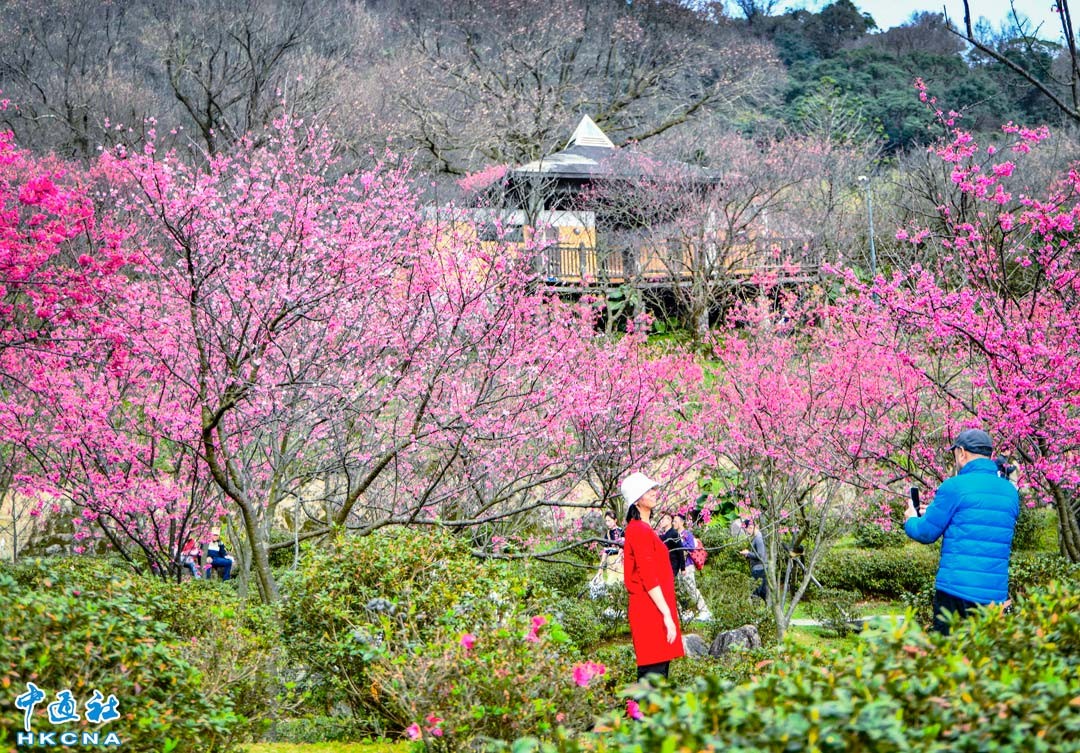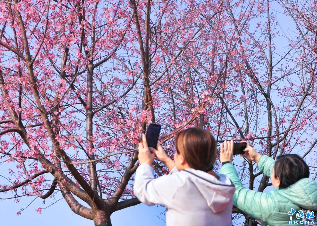 2月20日,大批香港市民和遊客在位於赤鱲角機場島的“櫻花海岸”觀賞櫻花。“櫻花海岸”在東涌灣畔種了約30棵櫻花樹,若加上旁邊的舊櫻花園,合共會有超過100棵,配上臥椅、步行道等設施,成為市民春天賞花休閒的熱門地點。(香港中通社記者 謝光磊攝)