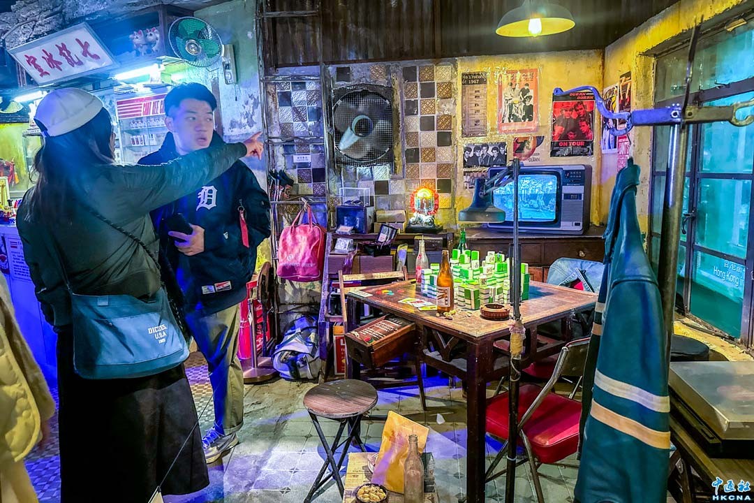 《九龍城寨之圍城》電影展覽近期在香港啟德AIRSIDE商場展出。展覽設置沉浸式電影場景,策劃三個展區,讓觀眾穿梭於寨城的後巷、室內場景及露天區域之中,彷彿親身置於電影世界。展覽除了還原經典的髮廊、冰室、後巷、四子房等場面,還特別設置漫畫攤、裁縫店、跌打舖、鞋匠店和牙醫診所,高度還原上世紀八十年代寨城風情。(香港中通社記者 曹文毓攝)