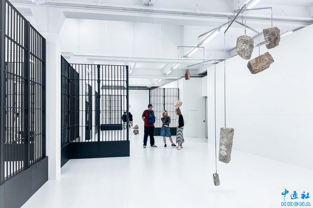 《艾莉斯亞·夸德:彼托邦》近日在香港大館展出,是藝術家艾莉斯亞·夸德在香港的首個美術館個展。展覽展出藝術家的九件作品,以及因應大館F倉歷史和建築而創作的裝置藝術。藝術家在對稱的展廳中創造了一個雕塑般的環境,讓作品彼此相依共存,如同一個多重宇宙。艾莉斯亞·夸德擅於借鑒抽象的科學和哲學概念,巧妙運用人造物及天然材料,把這些概念加以轉化。她的作品經常以時鐘、光管、時針、椅子、鏡子、鐵閘、磚頭和岩石等物件為媒材,集中探討及質疑現實和種種社會結構。(香港中通社記者 曹文毓攝)