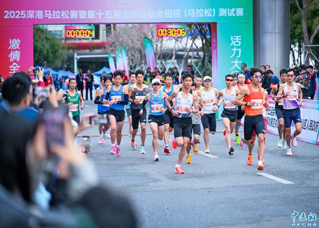 2月23日,2025深港馬拉松賽暨第十五屆全國運動會田徑(馬拉松)測試賽在深圳灣體育中心開跑。參賽運動員女16人男22人。包括來自不同省市的專業田徑隊,以及粵港澳三地的代表隊。整個賽道途經深圳南山區、前海自貿區和香港元朗區,總里程42.195公裡,其中,香港段21.841公里、深圳段20.354公里。(陳文 攝)