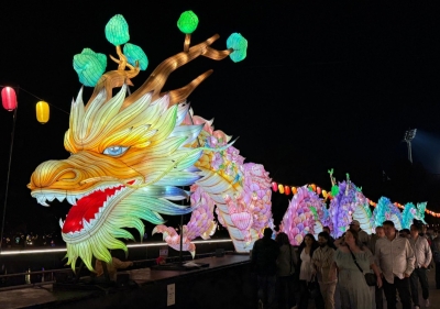 燈光匯演 (香港中通社記者 梁嘉軒攝) 慶祝啟德體育園與國泰合作的燈光匯演在合作雙方代表推下飛機油門後開始,意味著國泰再次在啟德“起飛”。匯演通過以飛機和地球組成的圖案,並不時以跑馬燈的形式出現“從世界到香港”“從香港到世界”“與啟德再次起飛”等字樣。 (完) 【編輯:梁嘉軒】