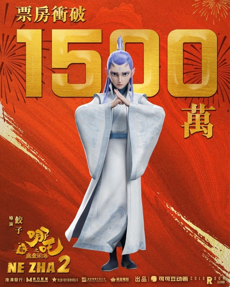 香港新聞網2月25日電 至24日下午5點,《哪吒之魔童鬧海》(《哪吒2》)上映不足三日,香港票房已衝破1500萬。作為港澳地區四大發行商,東方影業、寰亞洲立集團、銀都機構及英皇電影一齊發文多謝所有觀眾支持。